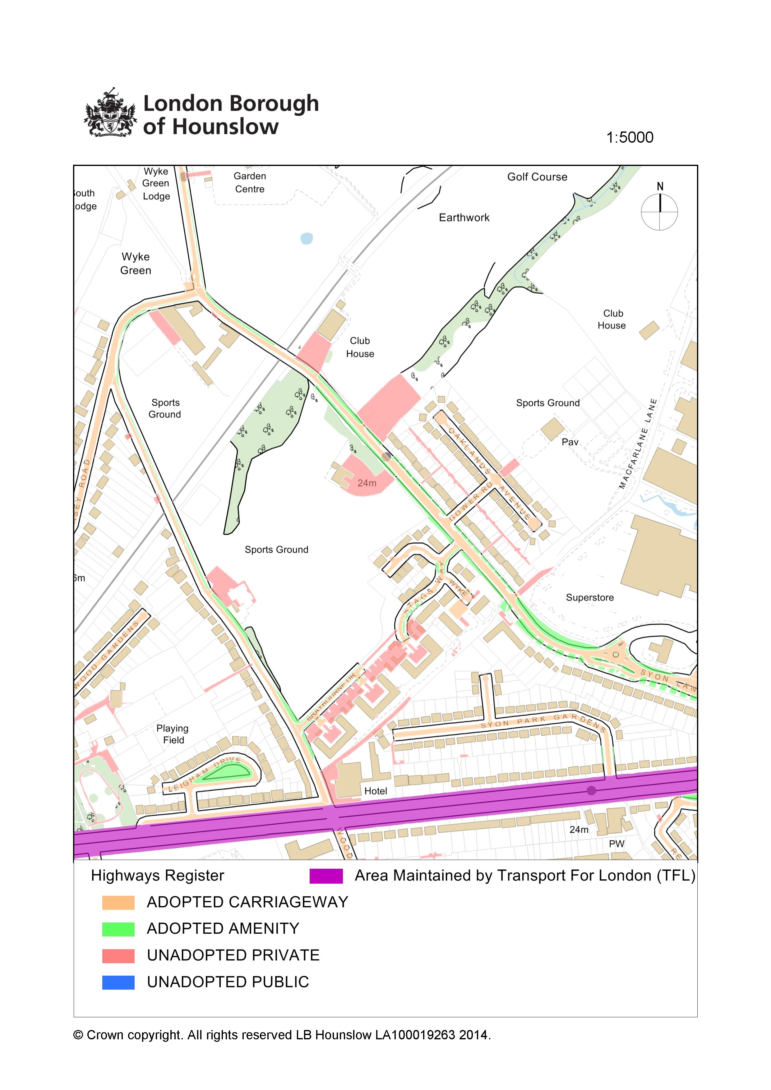 An extract from the Highways Register for this neighbourhood can be seen below, the hoarding is currently located on the west side of Syon Lane opposite Gower Road and runs north to the Piccadilly Line bridge.