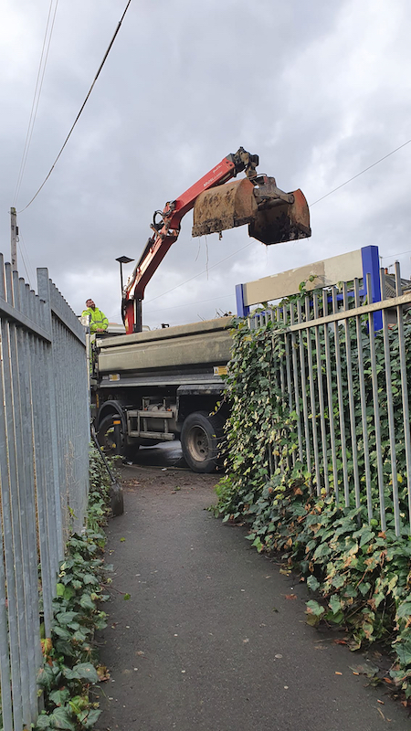 Grab lorry inhibiting pedestrians at Syon Lane Station