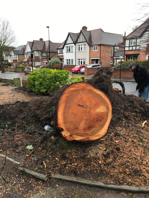 With Sabeel Khan at The Grove and the remnants of the poor Horse Chestnut by Kenwyn Court after Storm Eunice February 2022