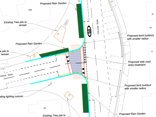 Slow forward to a couple of days before August Bank Holiday when, out of the blue, we received another shout that month long works are about to start on this long forgotten (by us) decision to reduce the junction width of Grove Road and College Road by almost two thirds from the current 24 metres to 8 metres.