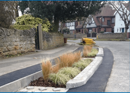 The scheme involves pavement widening, creation of a kerb level speed reducing surface, removal of the traffic island and three “rain gardens” designed to capture drainage water and feed plants to be located there. This is being undertaken by Hounslow Highways who recently wrote to tell affected residents.