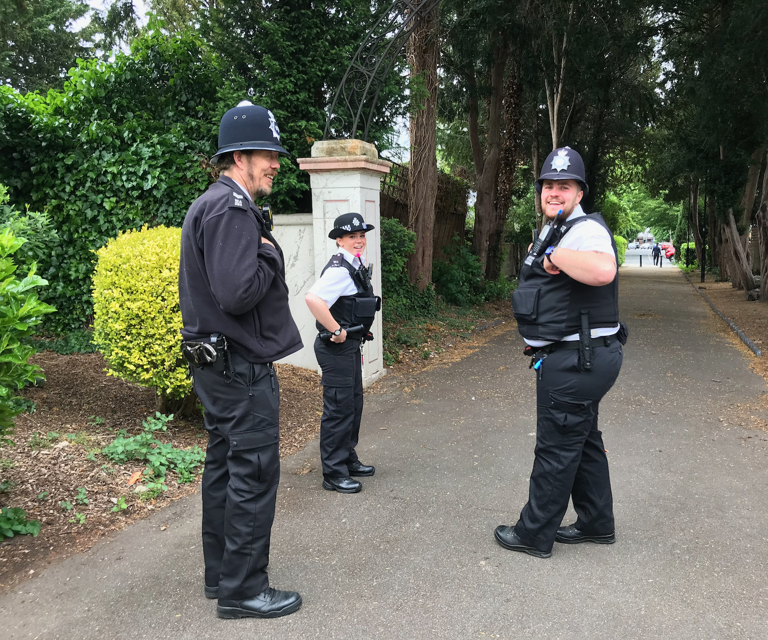 Sgt Cope with PCs Horton and Hulbert on Banksian Walk