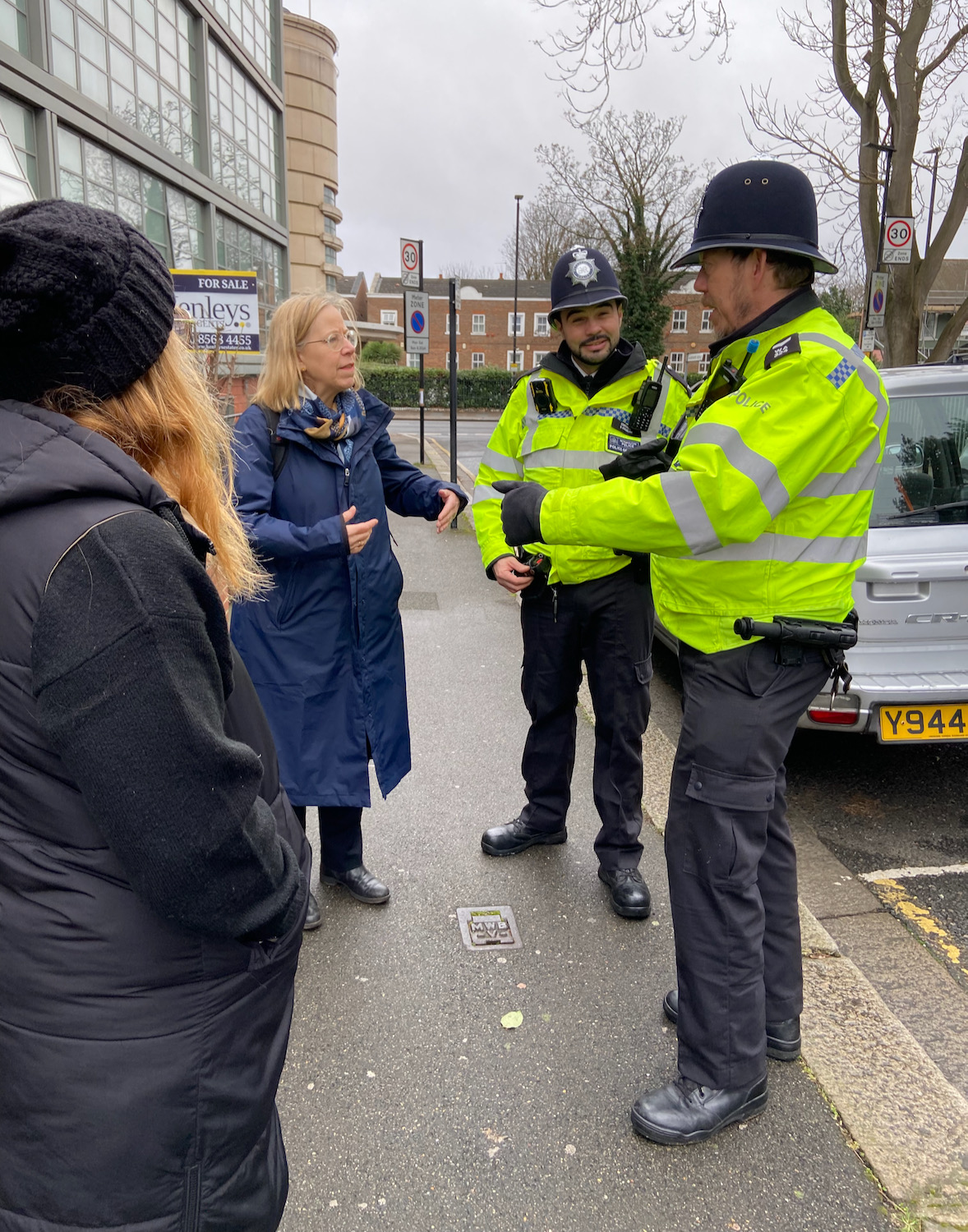 Walking the Ward with Ruth Cadbury MP on Harvard Road.